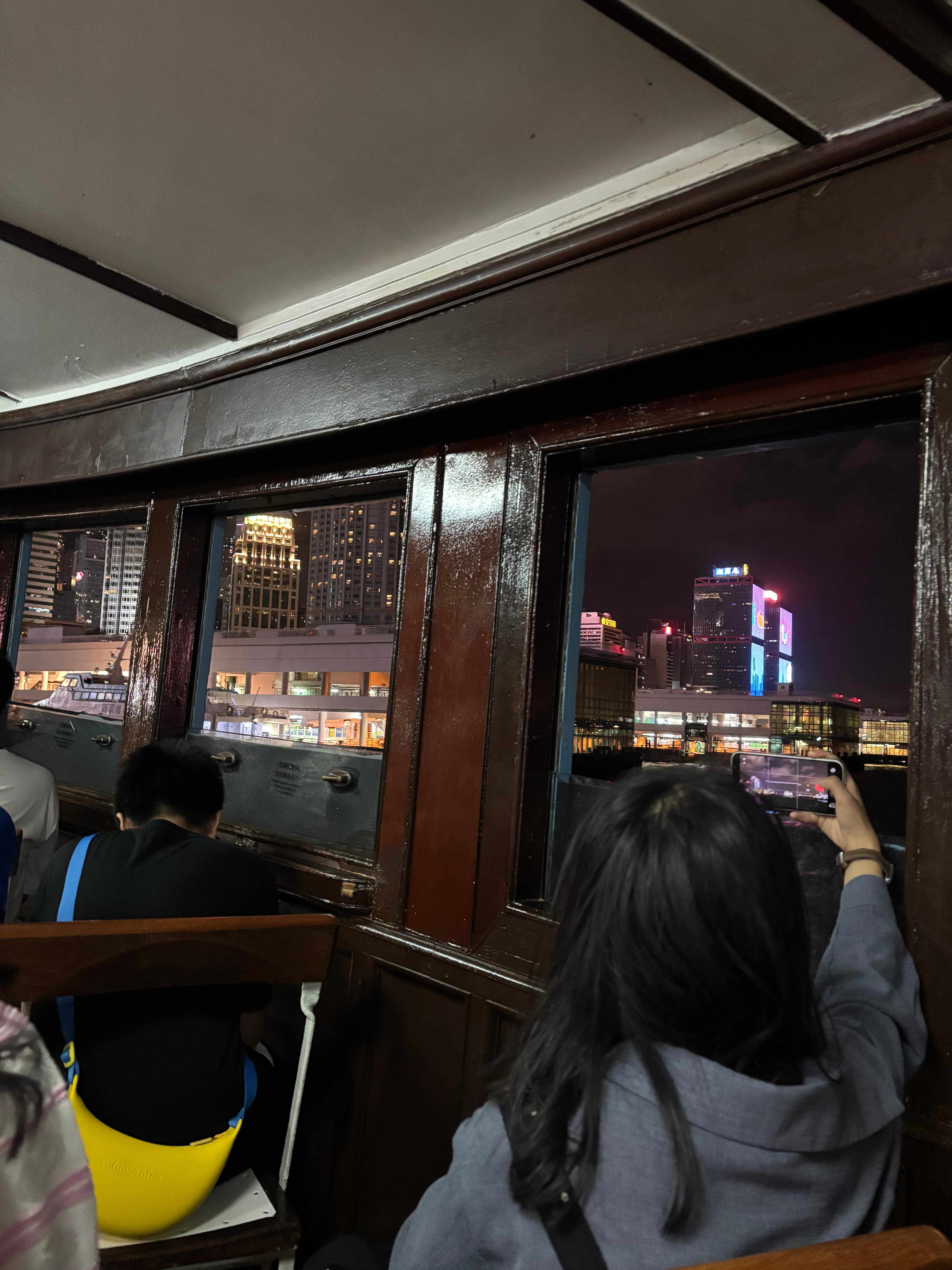 배 타러가는 항구에서 야경을 한 번 찍어두었습니다. 항상 홍콩 섬과 침사추이 사이에 오가는 배의 내부는 이렇습니다.
